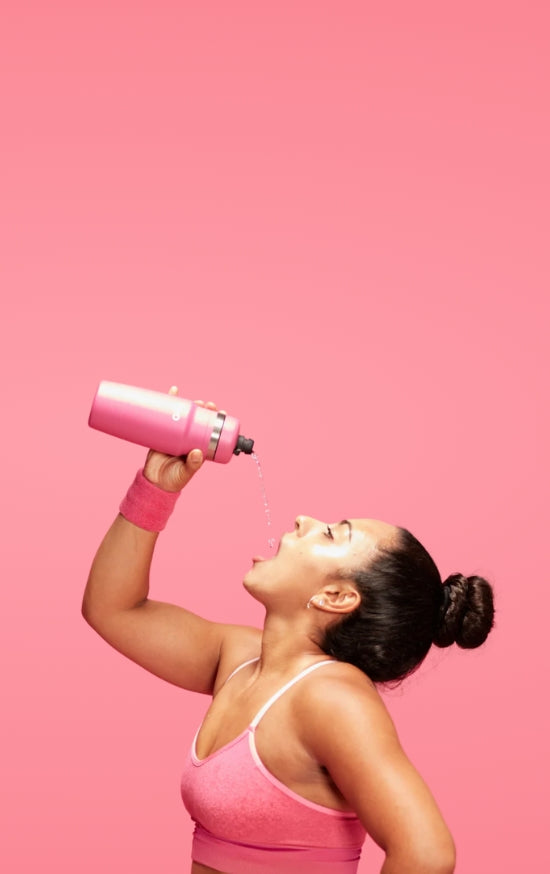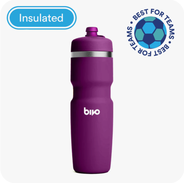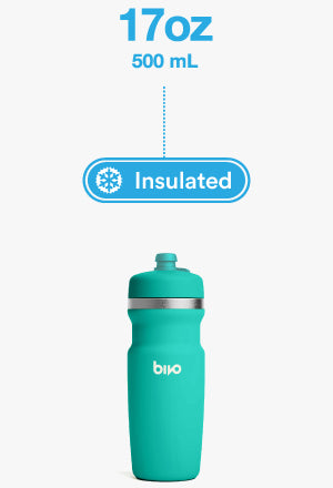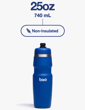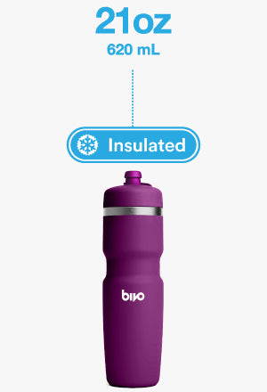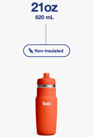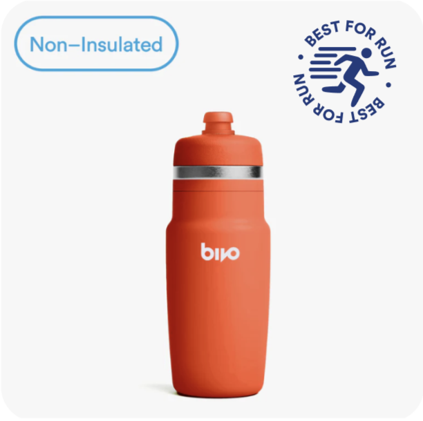 "My new favorite for running + biking. I use this bottle both in a handheld carrier for running, and in the water bottle cage of my commuter bike — it's perfect for both. For running, it's lightweight, keeps my water cold and doesn't leave that subtle plastic taste that I've experienced with other bottles."