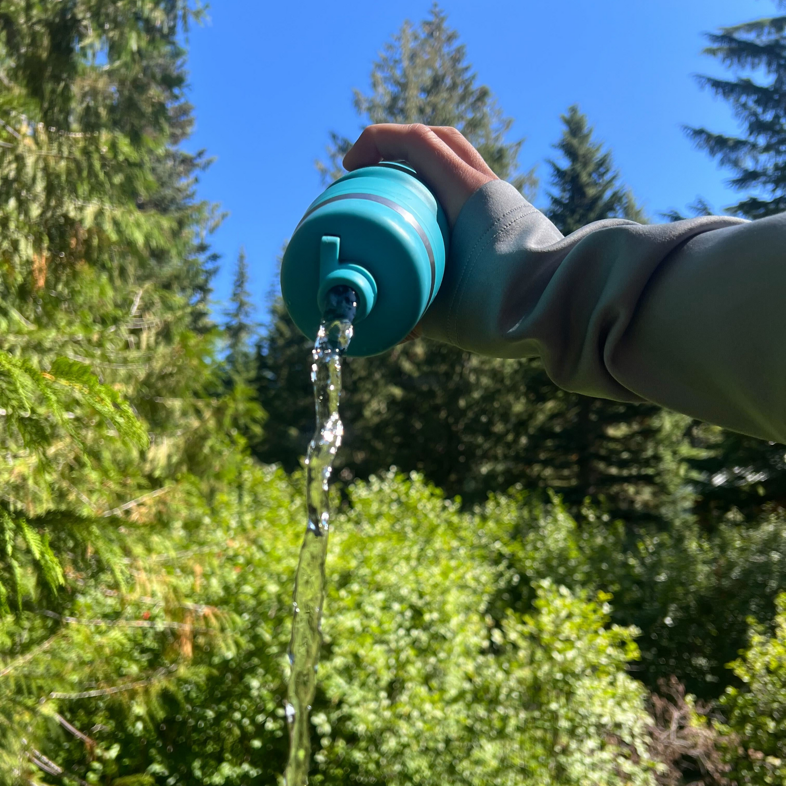 Since we can’t squeeze a metal bottle, when designing Bivo, we had to figure out how to make water pour out quickly. Enter: our patented(!) Gravity Flow system that vents air in to allow water to pour out as fast as it does.