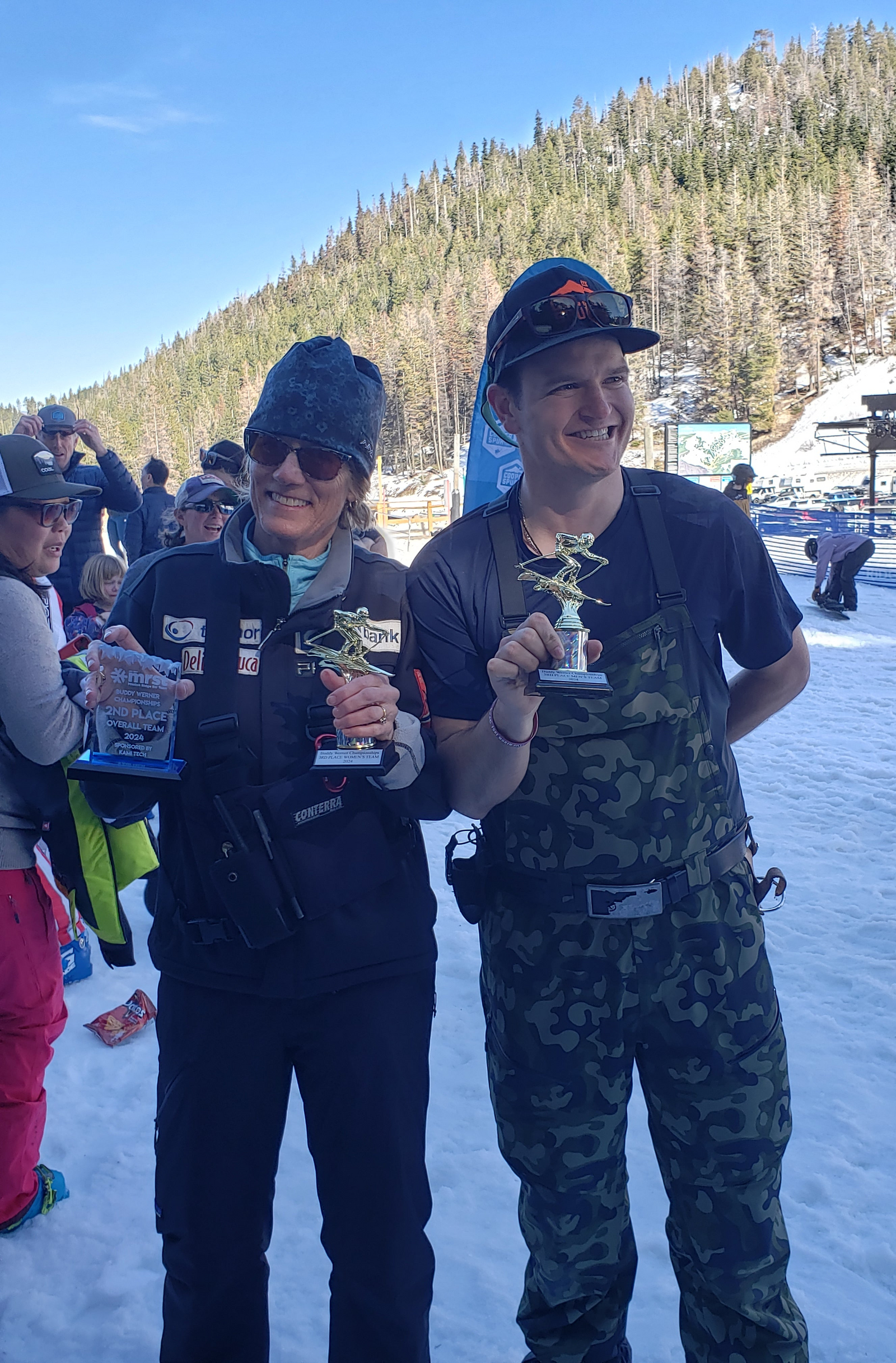 Pictured above: Mary and another coach after their team earned 2nd place overall at the Buddy Werner Championships this past winter.